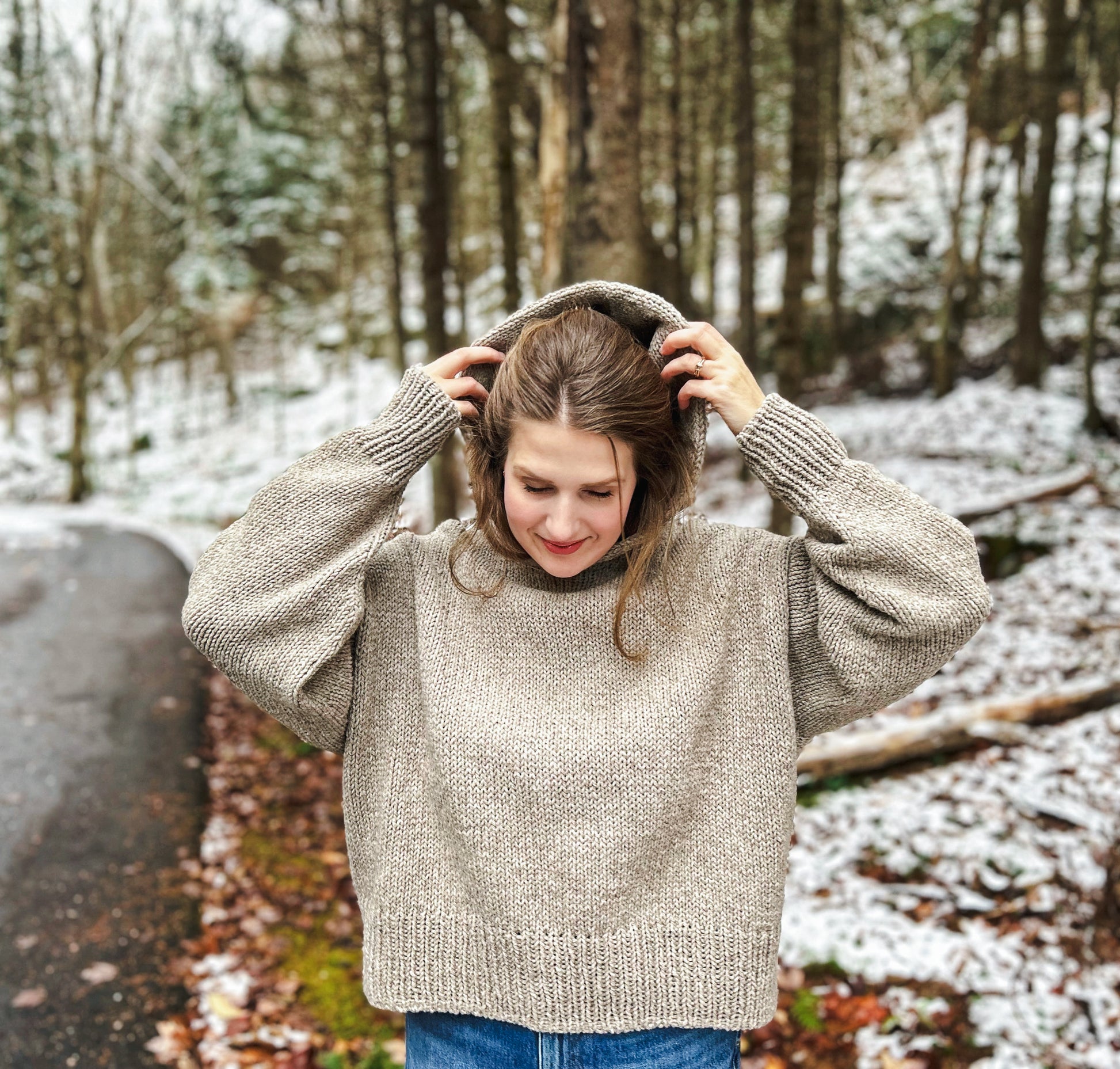 I love hoodies and I wanted a hand knit one that I could wear pretty much anywhere doing pretty much anything. I wanted it to be fashionable and effortlessly cool but also practical, warm, and cozy. I was also so motivated to find a way to create a big and relatively structured hood with knitting. This pattern is everything I hoped for and I am so excited to share it with you!